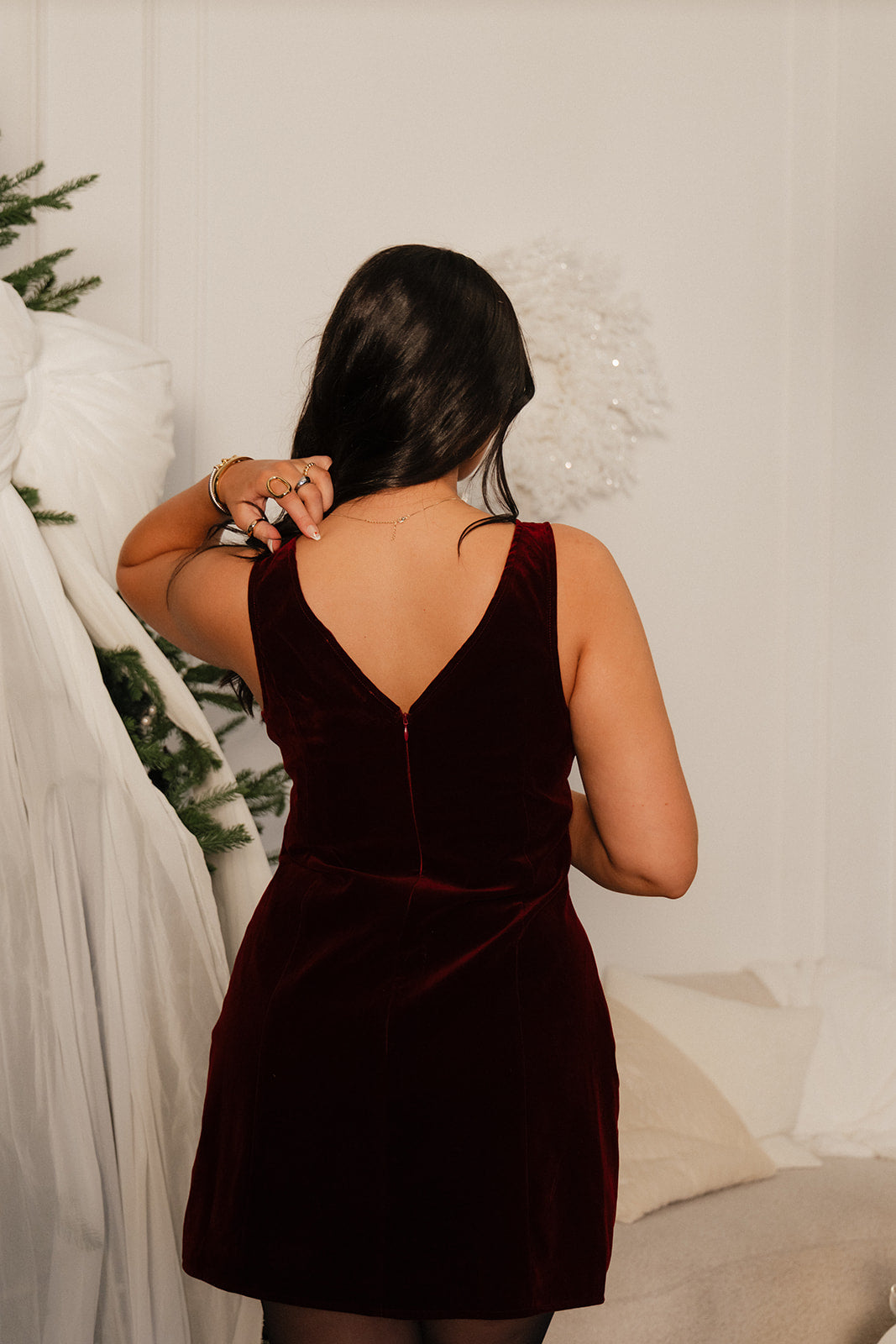 Introducing the Carmine Dress - the perfect combination of elegance and comfort. This lovely burgundy velvet mini dress will make you stand out at any event. Embrace its luxurious texture while enjoying its flattering and stylish cut. Upgrade your wardrobe with this must-have piece.