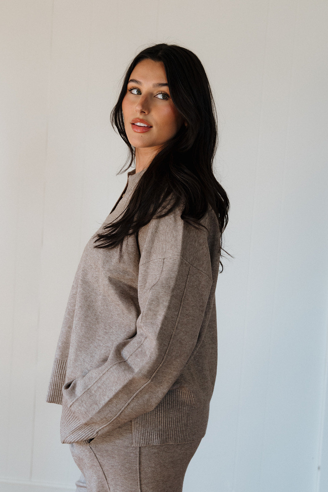 Elevate your wardrobe with the Delilah Sweater, featuring a refined light brown hue and a versatile V-neck collar. This cozy piece effortlessly blends comfort and style, perfect for layering or wearing alone. Its flattering neckline adds a touch of sophistication, making it ideal for both casual outings and polished looks. Experience warmth and elegance in one timeless sweater.