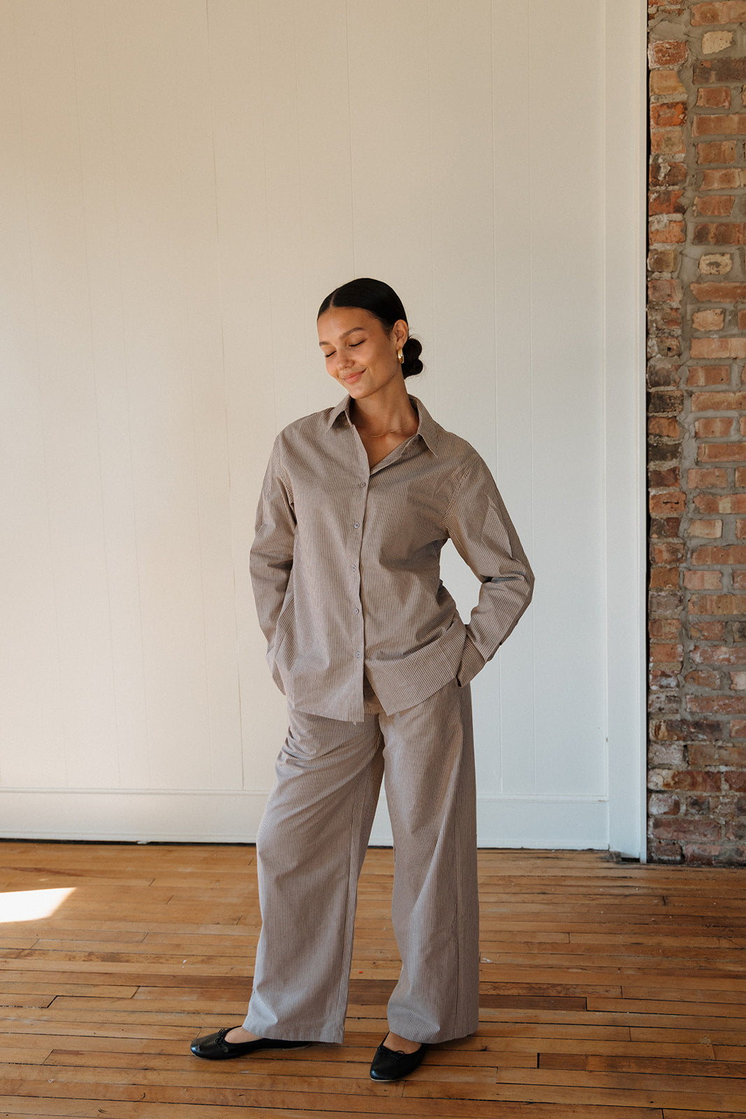 Experience effortless elegance with the Elizabeth Pants. These beige striped flowy pants offer a comfortable, breathable fit ideal for warm days or relaxed outings. Their lightweight fabric and flattering silhouette move gracefully with you, making them perfect for both casual wear and stylish occasions. Elevate your wardrobe with a versatile piece that combines comfort and chic sophistication.