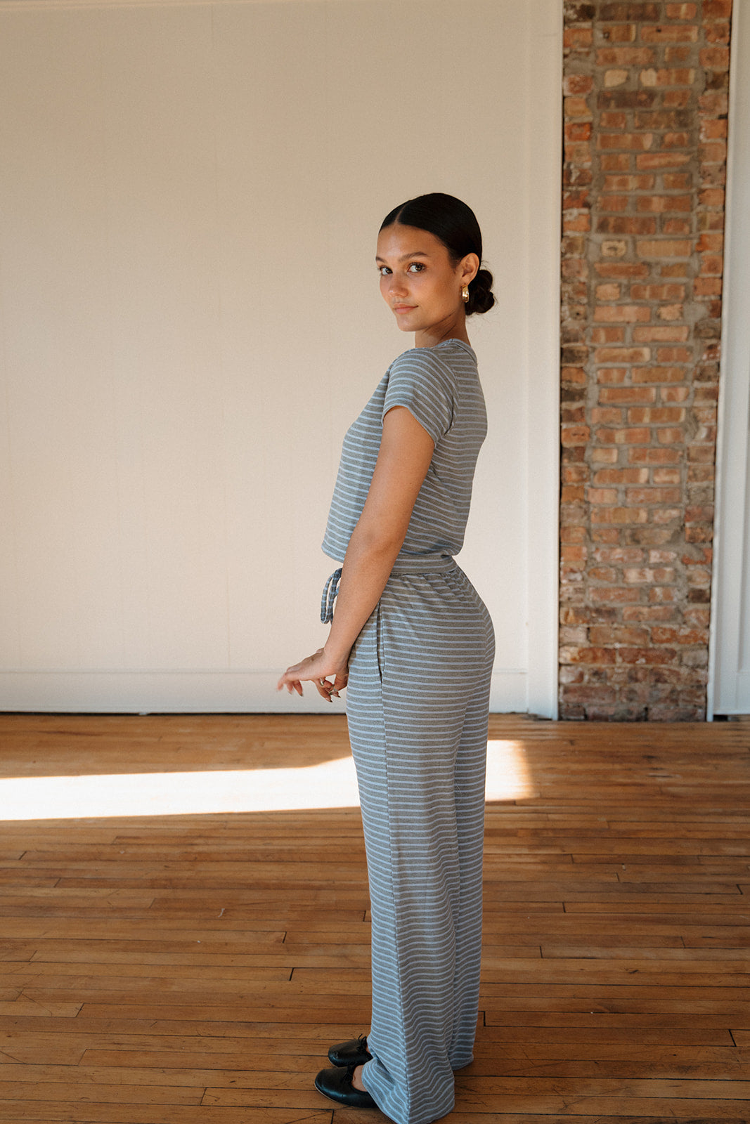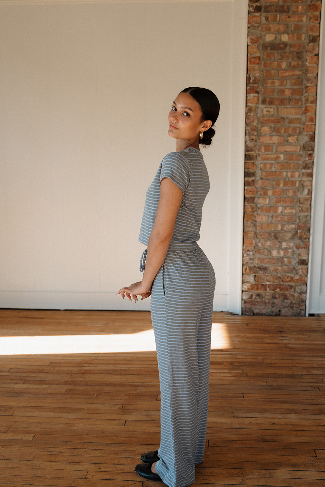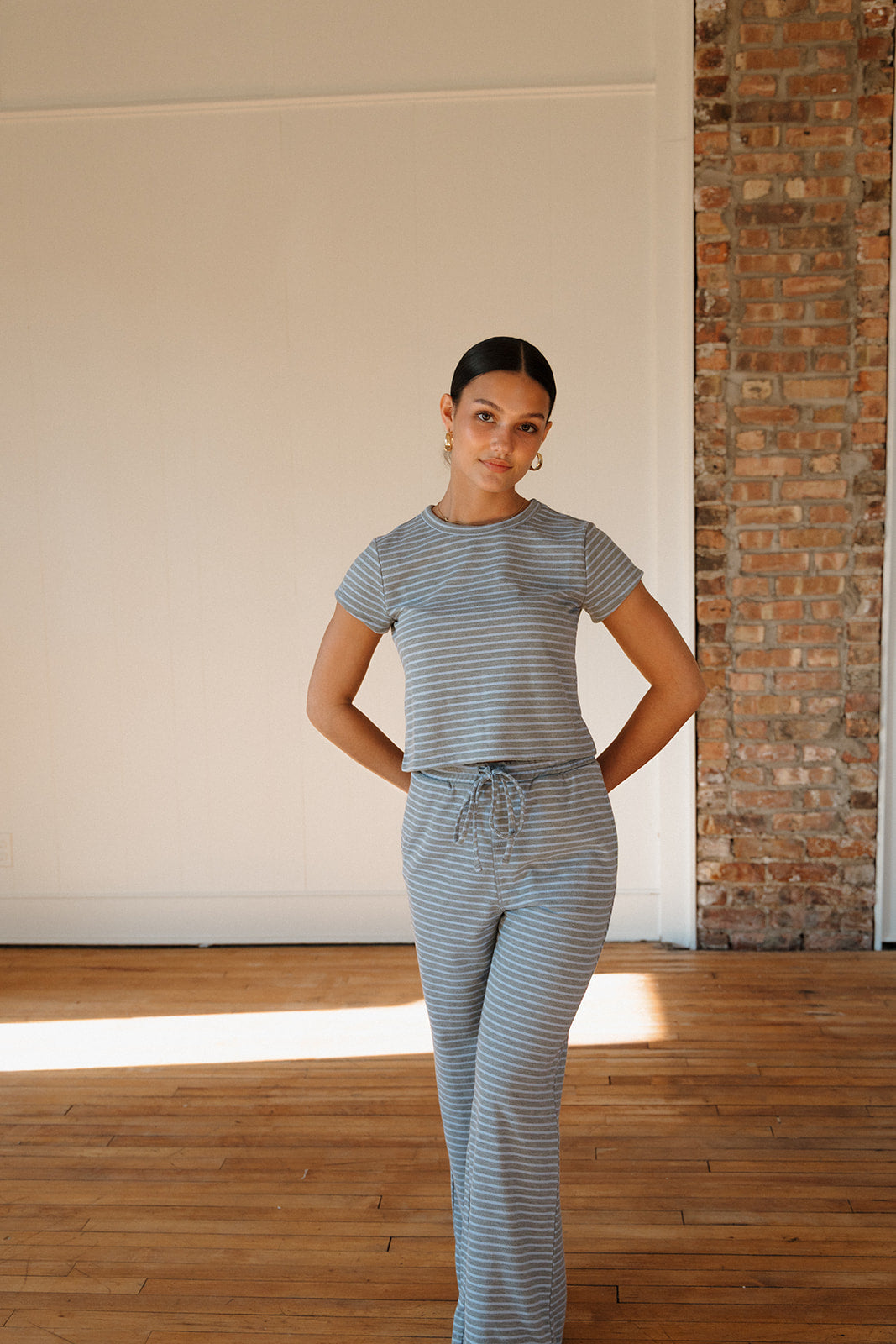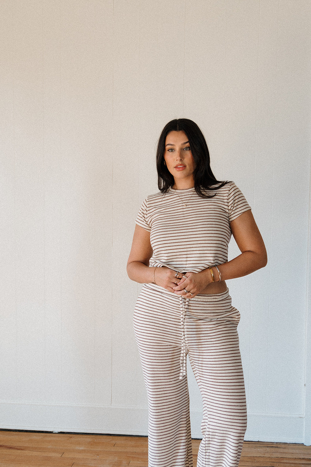 Step out with confidence in the Ronny Pants, crafted from soft cotton in a stylish striped pattern. These flare pants offer a flattering silhouette that enhances your curves while ensuring comfort all day long. Perfect for dressing up or down, their breathable fabric and timeless design make them a versatile addition to your wardrobe. Embrace effortless style and comfort with Ronny Pants.