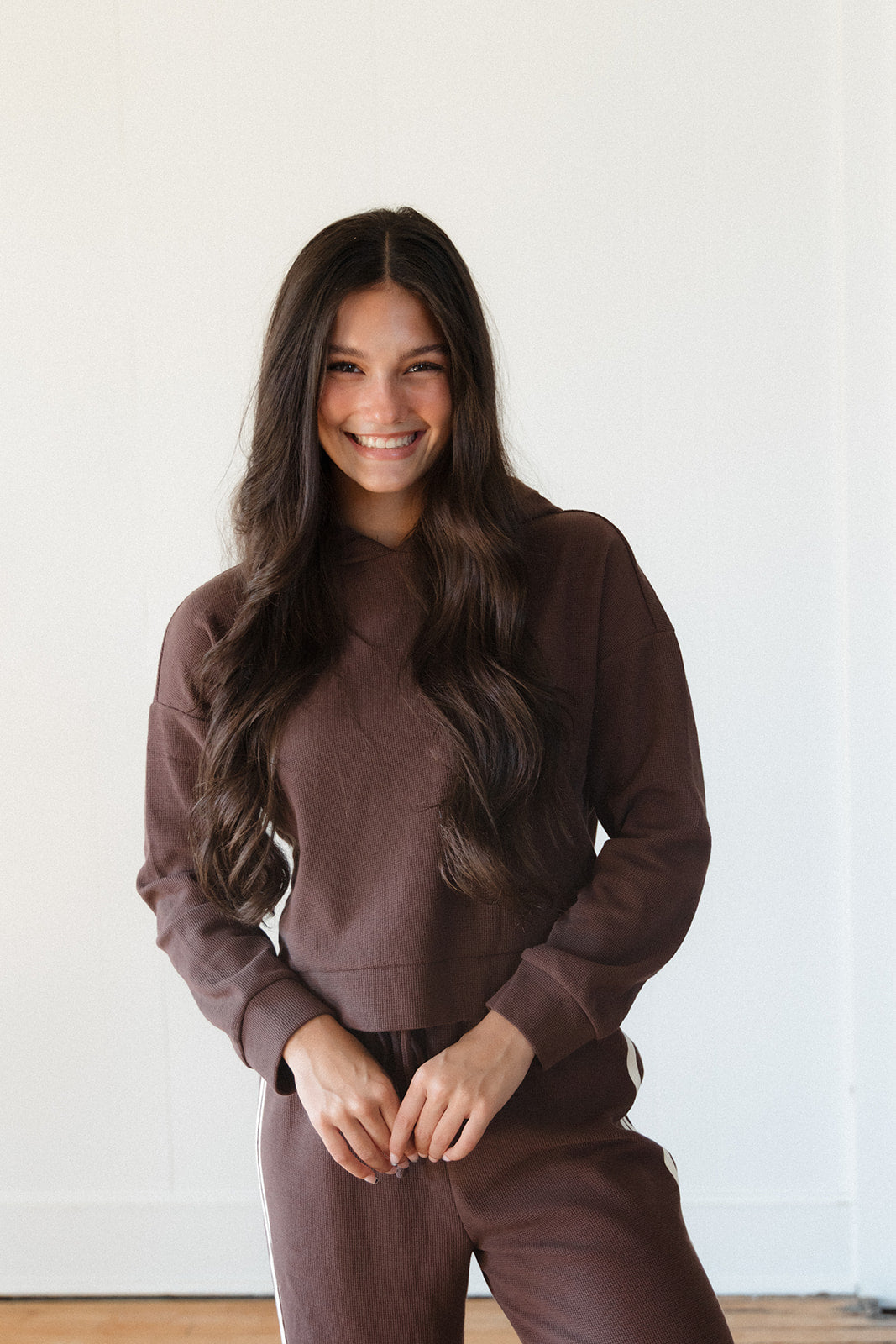Stay cozy and stylish with the Enzo Hoodie, crafted from soft brown waffle knit fabric that offers gentle warmth and breathable comfort. Its textured design adds subtle sophistication, making it perfect for layering or wearing on its own. Whether you're relaxing at home or out and about, this hoodie combines comfort and casual charm effortlessly.