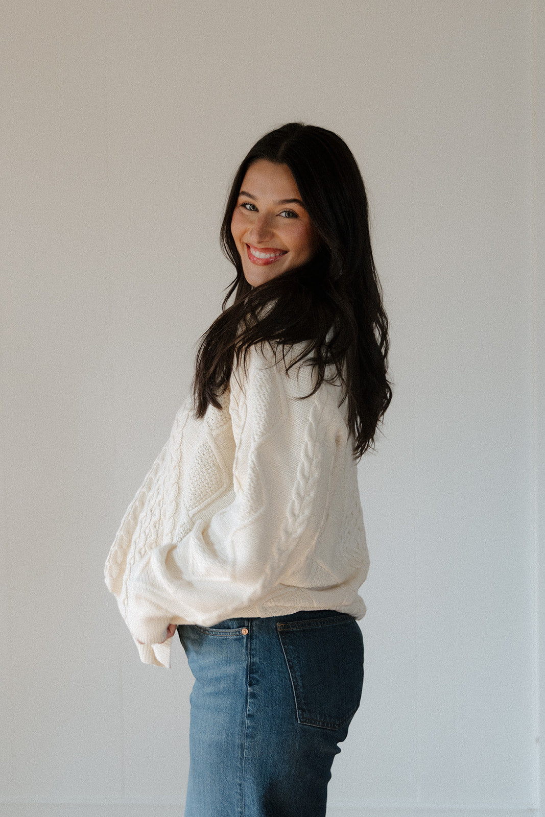 The Hallie Sweater wraps you in warmth and timeless style with its classic cable knit design. Crafted in a soft cream hue, this cozy sweater is perfect for layering on chilly days while adding a refined touch to any outfit. Its comfortable fit and textured pattern make it an essential wardrobe staple you’ll reach for season after season. Embrace effortless elegance and all-day comfort with the Hallie Sweater.