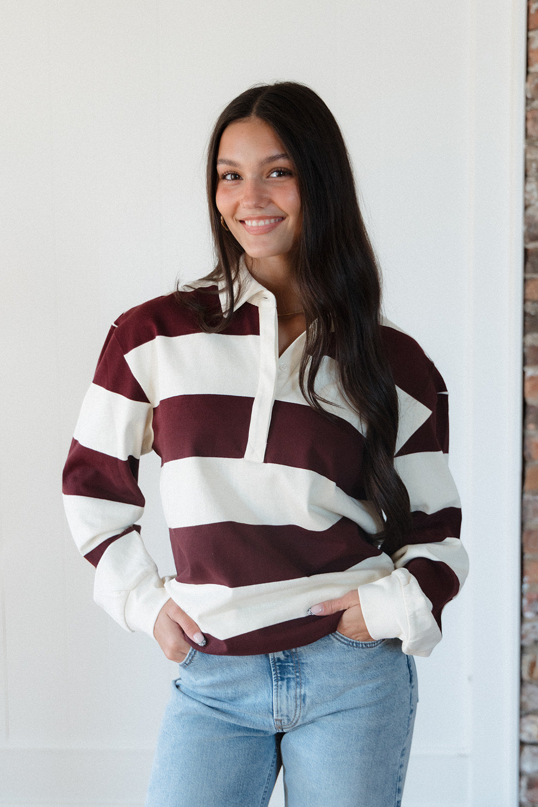 Elevate your casual wardrobe with the Ivy League Pullover, a Harvard-inspired striped oversized polo designed for effortless style and comfort. Its relaxed fit offers freedom of movement, while the classic collar adds a refined touch. Perfect for layering or wearing solo, this pullover combines timeless collegiate appeal with modern ease, making it your go-to piece for a polished yet laid-back look.